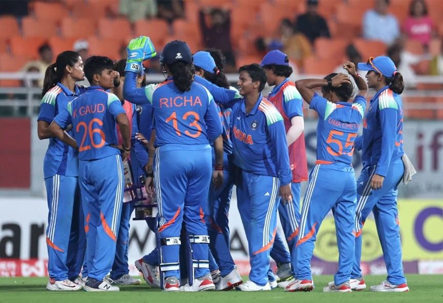 নিউ চণ্ডীগড়ে অজি দলকে ১৯০ রানে হারিয়ে সিরিজে সমতা ফেরাল ভারত। এদিন স্মৃতি মন্ধানার দাপুটে সেঞ্চুরিতে ২৯২ রান করে ভারত। জবাবে ব্যাট করতে নেমে ১০২ রানে গুটিয়ে যায় অস্ট্রেলিয়ার ইনিংস। এই জয়ের পর তিন ম্যাচের সিরিজে সমতায় ফিরলেন হরমনপ্রীতরা। শুরু থেকেই আগ্রাসী মনোভাব নিয়ে নামেন ভারতের দুই ওপেনার প্রতিকা রাওয়াল এবং স্মৃতি মন্ধানা। ৩২ বলে ২৫ রানে প্রতিকা আউট হলেও দমানো যায়নি স্মৃতিকে। ৭৭ বলে সেঞ্চুরি পূর্ণ করেন তিনি। শেষমেশ ৯১ বলে ১১৭ রানে সাজঘরে ফেরেন স্মৃতি। ঝোড়ো এই ইনিংসের পর ভারতীয় মহিলা ক্রিকেটারদের মধ্যে দ্বিতীয় দ্রুততম সেঞ্চুরির রেকর্ডও গড়েন। ভারতের হয়ে দ্বিতীয় সর্বোচ্চ রান দীপ্তি শর্মার। তিনি করেন ৫৩ বলে ৪০ রান। রিচা ঘোষের সংগ্রহ ২৯। তবে, এদিন রান পাননি ভারত অধিনায়ক হরমনপ্রীত কৌর। তাঁর নামের পাশে ১৭ রান। অস্ট্রেলিয়ার পক্ষে ডার্সি রোজ পেয়েছেন ৩ উইকেট। অ্যাশলি গার্ডনারের শিকার ২টি উইকেট। জবাবে ব্যাট করতে নেমে শুরুতেই অ্যালিশা হিলির উইকেট হারায় অস্ট্রেলিয়া। তাঁকে ৯ রানে সাজঘরে ফেরান ক্রান্তি গৌড়। রেণুকা সিংয়ের বলে রানের খাতা না খুলেই ফেরেন জর্জিয়া ভল। অস্ট্রেলিয়ার পক্ষে সর্বোচ্চ রান অ্যানাবেল সাদারল্যান্ডের। তিনি ৪৫ রান করে অরুন্ধতী রেড্ডির বলে আউট হন। এলিসি পেরি করে ৪৪। কিন্তু বাকি কোনও অজি ব্যাটার সেভাবে দাগ কাটতে পারেননি। ক্রান্তি গৌড় নেন ২৮ রানে ৩ উইকেট। দীপ্তি শর্মা পেয়েছেন ২৪ রানে ২ উইকেট।
