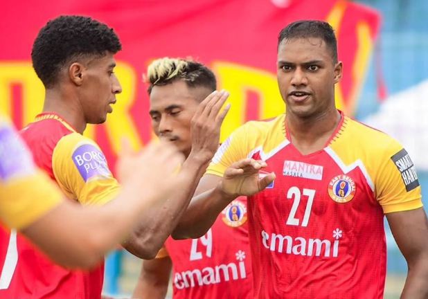অভিষেক ম্যাচেই গোল। ইস্টবেঙ্গলের জয় গুপ্তা। ম্যাচের আগের দিনই সহকারী কোচ বিনো জর্জ বলেছিলেন, সুপার কাপের আগে আইএফএ শিল্ডকে গুরুত্ব দিচ্ছেন তাঁরা। শুধু কথার কথা নয়, প্রমাণ করেদিলেন ইস্টবেঙ্গল ফুটবলারেরা। শ্রীনিধির বিরুদ্ধে প্রথম থেকেই আগ্রাসী ফুটবল খেলেন সাউল ক্রেসপো, হামিদ আহদাদেরা। ছোট ছোট পাস খেলে বলের নিয়ন্ত্রণ নিজেদের পায়ে রাখার চেষ্টা করেন অস্কার ব্রুজ়োর ছেলেরা। বিদেশিহীন শ্রীনিধির বিপক্ষে একের পর এক আক্রমণ তৈরি করে ইস্টবেঙ্গল। ২১ মিনিটের মাথায় ফ্রিকিক পায় ইস্টবেঙ্গল। মিগুয়েলের শট শ্রীনিধি গোলরক্ষক বাঁচালেও ফিরতি বল থেকে গোল করতে ভুল করেননি সুযোগ সন্ধানী জয়। ইস্টবেঙ্গলের হয়ে অভিষেক ম্যাচেই গোল করলেন গত মরসুমে আই লিগের সেরা ডিফেন্ডার। ৩৮ মিনিটে ইস্টবেঙ্গলের পক্ষে দ্বিতীয় গোল করেন ক্রেসপো। প্রথমার্ধে ২-০ ব্যবধানে এগিয়ে থেকে মাঠ ছাড়েন লাল-হলুদ ফুটবলারেরা। দ্বিতীয়ার্ধেও শ্রীনিধির ফুটবলারেরা বিশেষ কিছু করতে পারেননি। ইস্টবেঙ্গলকে সেই অর্থে কোনও চ্যালেঞ্জের মুখেই ফেলতে পারেনি হায়দরাবাদের দলটি। ইস্টবেঙ্গলও আগ্রাসী ফুটবলের রাস্তা থেকে সরেনি। ৪৮ মিনিটে লাল-হলুদের হয়ে তৃতীয় গোল করেন হামিদ। বিপিন সিংহের ক্রসে হেড দিয়ে গোল করেন তিনি। ৫২ মিনিটে দলের পক্ষে চতুর্থ গোল করে ইস্টবেঙ্গলের জয় নিশ্চিত করেন জিকসন সিংহ। ইস্টবেঙ্গল দাপট ধরে রাখলেও গোল সংখ্যা বাড়াতে পারেনি। আইএফএ শিল্ডে ইস্টবেঙ্গলের পরের ম্যাচ নামধারী এফসির বিরুদ্ধে ১৪ অক্টোবর। প্রথম ম্যাচে বড় ব্যবধানে জয় পাওয়ায়, সেই ম্যাচে আরও আত্মবিশ্বাসী হয়ে মাঠে নামতে পারবেন লাল-হলুদ ফুটবলারেরা।