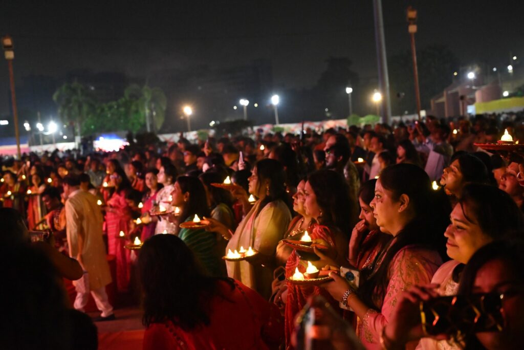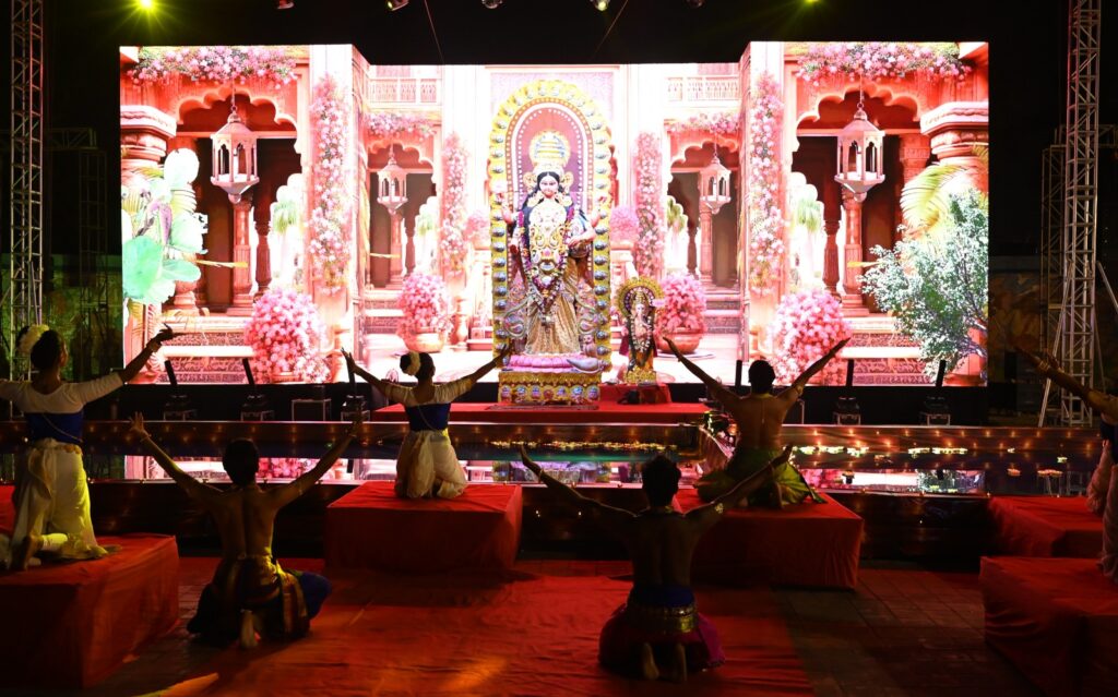 এক সন্ধ্যায় অনন্য মিশ্রণে ভক্তি, ঐতিহ্য ও উৎসবের উজ্জ্বল রূপ। সন্ধ্যার মূল আকর্ষণ ছিল দেবী মহালক্ষ্মীর ২৪ ফুট উচ্চমূর্তির মহাআরতি। মাড়োয়ারি সংস্কৃতি মঞ্চের মহিলা শাখার আয়োজনেই সাফল্য মণ্ডিত অনুষ্ঠান। ঐশ্বরিক অনুষ্ঠানের পর অনুষ্ঠিত হয় এক মনোমুগ্ধকর আতশবাজি প্রদর্শণী ও সংগীতানুষ্ঠান।