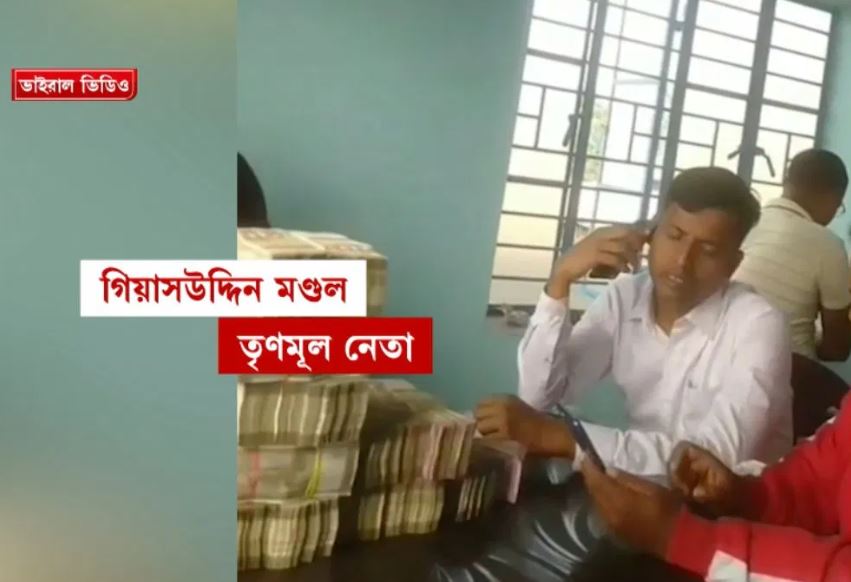 টাকার পাহাড়ের সামনে বসে তৃণমূলের পঞ্চায়েত সমিতির সহসভাপতি!‌ “গিয়াসউদ্দিন একজন জমি মাফিয়া, চোর, মাফিয়াদের নিয়েই তৃণমূল দলটা”