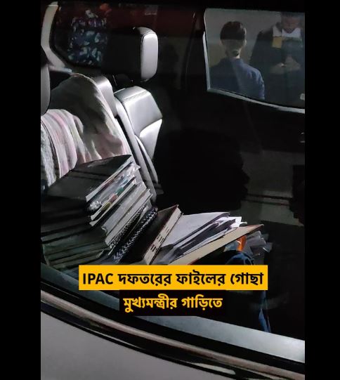 কয়লা পাচার মামলায় তল্লাশি। তৃণমূল কংগ্রেসের পরামর্শদাতা সংস্থা আইপ্যাকের সল্টলেক অফিসে তল্লাশি চালানোর মধ্যেই কেন্দ্রীয় সংস্থার তরফে দাবি করা হয়েছে, কয়লা পাচার মামলায় মোট ১০টি জায়গায় তল্লাশি চালানো হচ্ছে। তার মধ্যে ছ’টি জায়গা পশ্চিমবঙ্গের। বাকি চারটি দিল্লিতে অবস্থিত। নির্দিষ্ট আইনি প্রক্রিয়া মেনেই সব জায়গায় তল্লাশি অভিযান চালানো হচ্ছে। কিন্তু দুটি জায়গায় সাংবিধানিক পদে থাকা মানুষজন বেআইনিভাবে ঢুকে পড়েন। ইডির অভিযানের মধ্যেই আইপ্যাকের অফিস থেকে গাদা-গাদা ফাইল তোলা হল গাড়িতে। বৃহস্পতিবার আইপ্যাকের কর্ণধার প্রতীক জৈনের লাউডন স্ট্রিটের বাড়ি থেকে সবুজ ফাইল নিয়ে বেরিয়ে আসার পরে সল্টলেকে আইপ্যাকের অফিসে চলে আসেন মুখ্যমন্ত্রী মমতা বন্দ্যোপাধ্যায়। সোজা লিফটে করে চলে যান ওই বিল্ডিংয়ের ১১ তলায়, যেখানে আইপ্যাকের অফিস আছে। মুখ্যমন্ত্রী নীচে নামার আগেই গাদা-গাদা ফাইল এবং কাগজপত্র একটি সাদা গাড়িতে তোলা হয়। যে গাড়িটি (মাহিন্দ্রা এসইউভি গাড়ি, সরকারি লোগো নেই, তবে গাড়ির সামনে জাতীয় পতাকা ও ঠাকুরের ছবি আছে) তৃণমূল কংগ্রেসের নামে নথিভুক্ত আছে বলে একটি মহলের তরফে দাবি করা হয়েছে। তবে সেই ফাইলে কী আছে, তা স্পষ্ট নয়। কিন্তু ইডির তল্লাশির মধ্যেই কীভাবে ওই ফাইল, ডায়েরি ও কাগজপত্র নামিয়ে আনা হল, তা নিয়ে প্রশ্ন। প্রশ্ন, কীভাবে মুখ্যমন্ত্রীকে সেই ফাইল ও নথি নামিয়ে আনতে দিল কেন্দ্রীয় সংস্থা?সাদা মাহিন্দ্রা গাড়ি। তবে তাতে লেখা নেই ‘গর্ভমেন্ট অফ ওয়েস্ট বেঙ্গল’। সেই গাড়ির চালকের পিছনে সিটে রয়েছে গুচ্ছ-গুচ্ছ ফাইল। আজ সকালে যখন আইপ্যাকের কর্ণধার প্রতীক জৈনের বাড়িতে তল্লাশি চালাছিল ইডি, সেই সময় তাঁর বাড়ি পৌঁছে যান মমতা বন্দ্যোপাধ্যায়। তারপর বেরিয়ে আসেন সবুজ ফাইল নিয়ে। এরপর তিনি পৌঁছে যান আইপ্যাকের অফিসে। পরবর্তীতে দেখা গেল WB06Y5555 নম্বরের একটি সাদা স্করপিও গাড়ি রয়েছে। আর তার সিটে পড়ে রয়েছে একাধিক ফাইল। সেখানে দেখা যাচ্ছে রাজ্য সরকারের বিভিন্ন ডিপার্টমেন্টের ফাইল। প্রাথমিকভাবে জানা যাচ্ছে, এটি তৃণমূলের রেজিস্ট্রার গাড়ি।