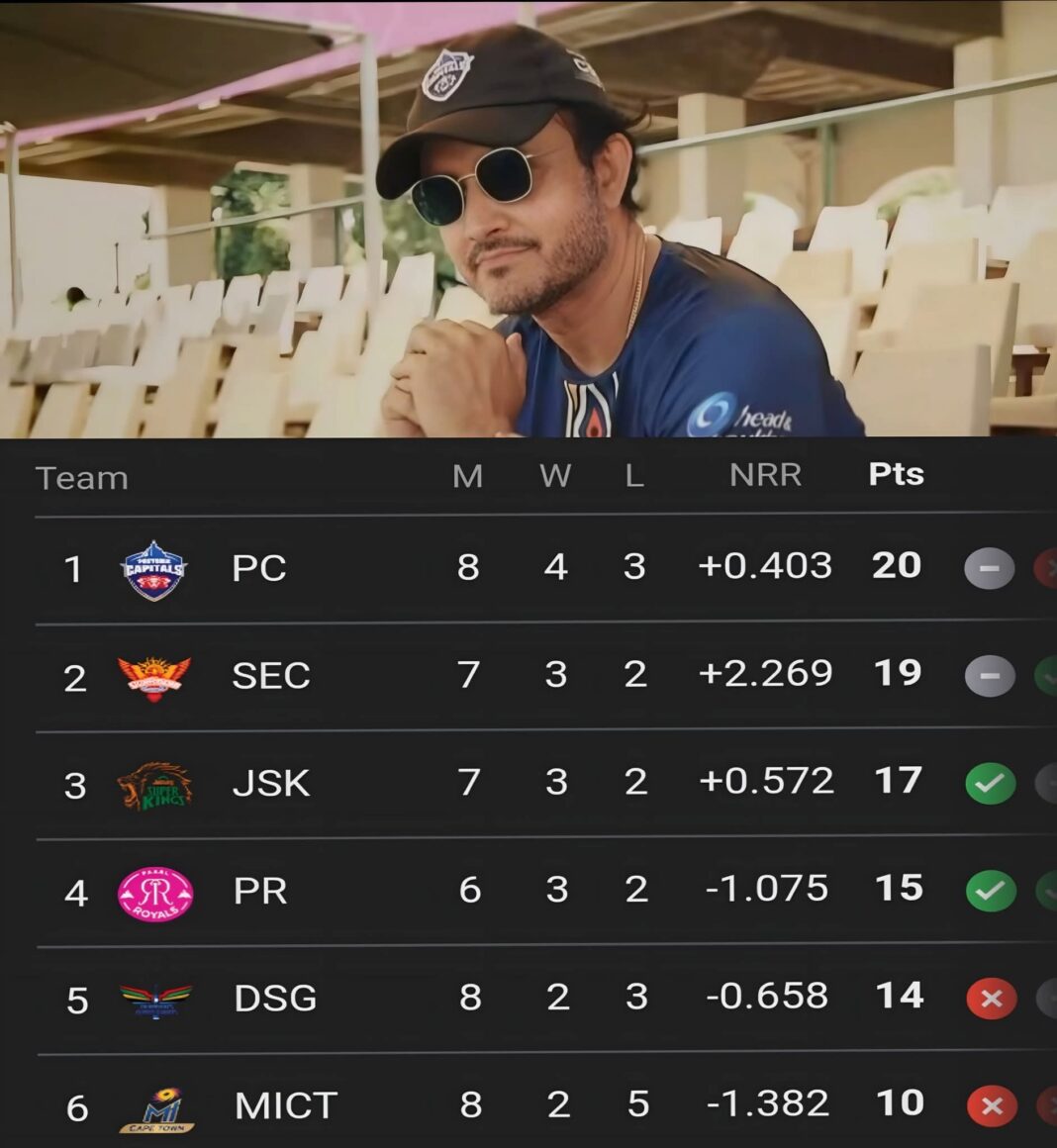 সৌরভ গঙ্গোপাধ্যায়ের প্রিটোরিয়া ক্যাপিটালস এখন শীর্ষে। জয়ের হ্যাটট্রিক। সৌরভের দল বোনাস পয়েন্ট নিয়ে দক্ষিণ আফ্রিকা লিগে শীর্ষে। দক্ষিণ আফ্রিকার ঘরোয়া টি-টোয়েন্টি লিগ ‘এসএ২০’-তে প্রিটোরিয়া ৫৩ রানে হারিয়েছে এমআই কেপ টাউনকে। আট ম্যাচে ২০ পয়েন্ট প্রিটোরিয়ার। সৌরভ এই দলের প্রধান কোচ। প্রথম পাঁচ ম্যাচে মাত্র একটি জয়। সেখান থেকে পর পর তিনটি ম্যাচ জিতে সৌরভ গঙ্গোপাধ্যায়ের প্রিটোরিয়া ক্যাপিটালস এখন শীর্ষে। দক্ষিণ আফ্রিকার ঘরোয়া টি-টোয়েন্টি লিগ ‘এসএ২০’-তে প্রিটোরিয়া ৫৩ রানে হারিয়েছে এমআই কেপ টাউনকে। সৌরভ এই দলের প্রধান কোচ। আট ম্যাচে ২০ পয়েন্ট প্রিটোরিয়ার। শেষ ম্যাচে বোনাস পয়েন্ট নিয়ে জিতেছে প্রিটোরিয়া। শেরফানে রাদারফোর্ডের মাত্র ২৭ বলে ৫৩ রানের ইনিংসের ফলে প্রিটোরিয়া প্রথমে ৬ উইকেটে ১৮৫ রান তোলে। দলের রান যখন ৪ উইকেটে ৮৯ এবং হাতে মাত্র ৭ ওভার, তখন এই ওয়েস্ট ইন্ডিয়ান ব্যাটার পাল্টা আক্রমণ শুরু করে ম্যাচের মোড় ঘুরিয়ে দেন। রাদারফোর্ড যোগ্য সঙ্গী হিসেবে পান ডেওয়াল্ড ব্রেভিসকে। এই জুটি মাত্র ৩৪ বলে ৬৯ রান যোগ করে। এমআই কেপ টাউনকে তাদের খারাপ ফিল্ডিংয়ের মাসুল দিতে হয়েছে। করবিন বশের পর পর দুই বলে দুই ব্যাটারই জীবন ফিরে পান। এর পর ব্রেভিস কাগিসো রাবাডাকে দু’টি অবিশ্বাস্য ছক্কা মারেন। তার মধ্যে একটি ছিল ‘নো-লুক’ ফ্লিক। রাদারফোর্ড ট্রেন্ট বোল্টের এক ওভারেই ১৬ রান তুলে নেন। প্রিটোরিয়া ব্যাটিংয়ের ছন্দ ধরে রাখে বোলিংয়েও। গিডিয়ন পিটার্স ডাবল-উইকেট মেডেন ওভার করে এমআই কেপ টাউনের মিডল অর্ডার ধসিয়ে দেন। এমআই কেপ টাউনের স্কোর ৪৬/২ থেকে মাত্র ১১ রানের ব্যবধানে ৫৫/৬ হয়ে যায়। ব্যাটিংয়ের পর ফিল্ডিংয়েও নজর কাড়েন ব্রেভিস। বাউন্ডারি লাইনে দু’টি ভাল ক্যাচ নিয়ে তিনি এমআই কেপ টাউনকে ম্যাচ থেকে ছিটকে দেন। এমআই কেপ টাউনের পক্ষে রিজা হেনড্রিকস ৫০ বলে অপরাজিত ৬৮ রান করে একা লড়াই করলেও ১৩২/৭ রানের বেশি তুলতে পারেনি। সৌরভের দলের পরের দু’টি ম্যাচ পার্ল রয়্যালস (বৃহস্পতিবার) ও জোহানেসবার্গ সুপার কিংস (শনিবার)-এর বিরুদ্ধে।
