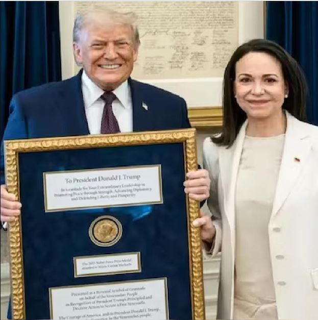 সমাজমাধ্যমে ট্রাম্প লিখেছেন, “আমার কাজের জন্য মারিয়া ওঁর নোবেল শান্তি পুরস্কার আমাকে দিয়ে দিয়েছেন।” ট্রাম্পের পোস্টের পর হোয়াইট হাউসের তরফেও জানানো হয়েছে, এখন থেকে নোবেল শান্তি পুরস্কারের পদক ট্রাম্পের কাছেই থাকবে। অবশেষে নোবেল শান্তি পুরস্কার পেলেন ডোনাল্ড ট্রাম্প! তবে এই পুরস্কার তাঁর নিজের অর্জন নয়। ভেনেজ়ুয়েলার বিরোধী নেত্রী মারিয়া কোরিনা মাচাদো নিজের নোবেল পুরস্কার তুলে দিলেন ট্রাম্পের হাতে। আগেই অবশ্য নিজের এই ইচ্ছার কথা জানিয়েছিলেন। এমনকি ২০২৫ সালে নোবেল শান্তি পুরস্কার পেয়েই তিনি তা ট্রাম্পকে উৎসর্গ করেছিলেন। হোয়াইট হাউসে ট্রাম্পের সঙ্গে দেখা করে ওই পুরস্কার মার্কিন প্রেসিডেন্টকে দিয়ে এলেন। কী কারণে তিনি তাঁর পাওয়া নোবেল শান্তি পুরস্কারের পদক ট্রাম্পকে দিয়ে দিলেন, তার ব্যাখ্যাও দিয়েছেন মাচাদো। তাঁর ব্যাখ্যা, ভেনেজুয়েলায় ‘স্বাধীনতা’ ফেরানোর বিষয়ে প্রতিশ্রুতি বজায় রাখার জন্য তিনি ওই পুরস্কার ট্রাম্পকে দেওয়ার সিদ্ধান্ত নেন। প্রসঙ্গত, কয়েক দিন আগেই ভেনেজুয়লায় অভিযান চালিয়ে সে দেশের প্রেসিডেন্ট নিকোলাস মাদুরো এবং তাঁর স্ত্রীকে বন্দি করে আমেরিকায় নিয়ে গিয়েছে আমেরিকার সেনা। কট্টর মাদুরো-বিরোধী হিসাবে পরিচিত মাচাদো ওই ঘটনাকেও দেশে স্বাধীনতা প্রতিষ্ঠার সঙ্গে তুলনা করেছেন বলে মনে করা হচ্ছে। হোয়াইট হাউসে ট্রাম্পের সঙ্গে ঘণ্টাখানেক বৈঠক করেন মাচাদো। বৈঠকের পর সংবাদমাধ্যমের মুখোমুখি হয়ে ট্রাম্পকে ধন্যবাদ জানান মাচাদো। মাচাদোর সঙ্গে বৈঠকের পর সমাজমাধ্যমে একটি পোস্ট করেছেন ট্রাম্প। মাচাদোর প্রশংসা করে তিনি লিখেছেন, “উনি দারুণ এক জন মহিলা। আমার কাজের জন্য মারিয়া ওঁর নোবেল শান্তি পুরস্কার আমাকে দিয়ে দিয়েছেন। পারস্পরিক শ্রদ্ধার একটা দারুণ নজির এটা। ধন্যবাদ মারিয়া।” ট্রাম্পের পোস্টের পর হোয়াইট হাউসের তরফেও জানানো হয়েছে, এখন থেকে নোবেল শান্তি পুরস্কারের পদক ট্রাম্পের কাছেই থাকবে। মাচাদো বা ট্রাম্প চাইলেই যে পুরস্কার হস্তান্তর সম্ভব নয়, তা আগেই স্পষ্ট করে দিয়েছিল নোবেল কমিটি। জানানো হয়, শান্তি পুরস্কার কারও সঙ্গে ভাগ করা, প্রত্যাহার করা বা স্থানান্তরিত করা যায় না। তাদের বিবৃতি অনুযায়ী, পুরস্কার প্রাপকের নাম এক বার ঘোষণা হয়ে গেলে ওই সিদ্ধান্ত সব সময়ের জন্য বহাল থাকে। আট মাসে আট বার যুদ্ধ থামিয়েছেন বলে একাধিক বার দাবি করেছিলেন আমেরিকার প্রেসিডেন্ট। প্রতিটি যুদ্ধ থামানোর জন্য একটি করে নোবেল পুরস্কার পাওয়া উচিত ছিল বলে দাবি করেছিলেন তিনি। বারাক ওবামার নোবেল-প্রাপ্তি নিয়ে কটাক্ষ করে ট্রাম্প বলেছিলেন, ‘‘উনি কিছুই করেননি।’’ নোবেল শান্তি পুরস্কার না-পাওয়া নিয়ে সম্