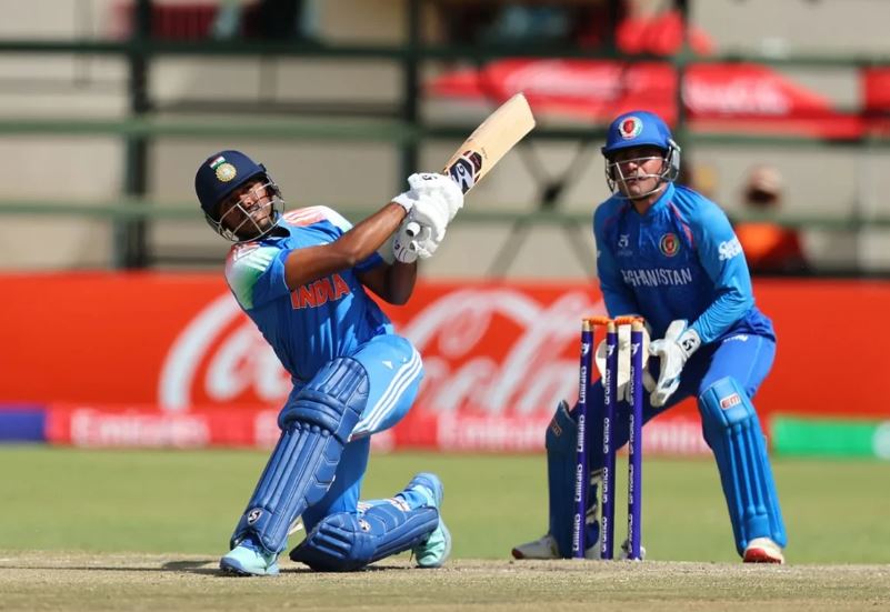 টুর্নামেন্ট জুড়ে দাপট দেখিয়েছে ভারতের যুব ব্রিগেড। সেমিফাইনালেও তার অন্যথা হল না। দুরন্ত পারফরম্যান্সে আফগানিস্তানকে হারিয়ে ফাইনালে চলে গেল ভারত। বিরাট কোহলি, শুভমান গিলদের পর এবার বৈভব সূর্যবংশীদের হাত ধরে অনূর্ধ্ব ১৯ বিশ্বকাপ আসবে ভারতে? সেই আশা জাগিয়ে রেখে ফাইনালে উঠে গেল টিম ইন্ডিয়া। গোটা টুর্নামেন্ট জুড়ে দাপট দেখিয়েছে ভারতের যুব ব্রিগেড। সেমিফাইনালেও তার অন্যথা হল না। দুরন্ত পারফরম্যান্সে আফগানিস্তানকে হারিয়ে ফাইনালে চলে গেল ভারত। এবার খেতাবি যুদ্ধে আয়ুষ মাত্রেদের প্রতিপক্ষ ইংল্যান্ড। অনূর্ধ্ব ১৯ বিশ্বকাপের সেমিফাইনালে ছিল সেয়ানে সেয়ানে টক্কর। গোটা টুর্নামেন্টে অপরাজিত ভারতের প্রতিপক্ষ ছিল আফগানিস্তান যারা গোটা টুর্নামেন্টে মাত্র একটা ম্যাচ হেরেছে। দুই শক্তিশালী দলের মধ্যে অবশ্য সেরকম হাড্ডাহাড্ডি লড়াই দেখা গেল না। প্রথমে ব্যাট করে আফগানিস্তান ৩১০ রান তোলে। কিন্তু বড় টার্গেটও অনায়াসে তুলে ফেলল ভারতের অনূর্ধ্ব ১৯ ব্রিগেড। ষষ্ঠবার বিশ্বচ্যাম্পিয়ন হওয়ার হাতছানি বয়েজ ইন ব্লুর সামনে।