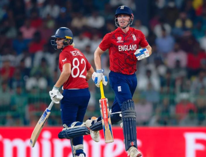 জবাবে ব্যাট করতে নেমে ইংল্যান্ডের শুরুটা ভাল হয়নি। দুই ওপেনারই রান পাননি। ফিল সল্ট ২ ও জস বাটলার শূন্য রানে আউট হন। আরও এক বার ইনিংস সামলান হ্যারি ব্রুক। তাঁকে সঙ্গ দেন জেকব বেথেল। কিন্তু এই ম্যাচে ব্রুক বড় ইনিংস খেলতে পারেননি। ২৬ রানে আউট হন। বেথেল করেন ২১ রান। এই ম্যাচেও বল হাতে নজর কাড়লেন রাচিন। চার ওভাবে ১৯ রান দিয়ে ৩ উইকেট নেন তিনি। টম ব্যান্টন (৩৩) ও স্যাম কারেনের (২৪) গুরুত্বপূর্ণ উইকেট নেন রাচিন। এই জুটি ফেরার পর মনে হচ্ছিল, ইংল্যান্ড আর পারবে না। কিন্তু উইল জ্যাকস আরও এক বার দেখালেন, তিনি এই দলে কতটা গুরুত্বপূর্ণ। ১৮ বলে ৩২ রানের ইনিংস খেললেন। তাঁকে সঙ্গ দিলেন রেহান। সাত বলে ১৯ রান কর। ১৮তম ওভারে ফিলিপ্সের হাতে বল তুলে দেন স্যান্টনার। সেখানেই ভুল করেন তিনি। সেই ওভারে দু’টি ছক্কা ও দু’টি চার দেন ফিলিপ্স। খেলা ঘুরে যায়। পরের ওভারে রান দেন স্যান্টনারও। শেষ ছয় বলে জিততে ইংল্যান্ডের দরকার ছিল ৫ রান। তিন বল বাকি থাকতে ম্যাচ জিতে যায় ইংল্যান্ড।