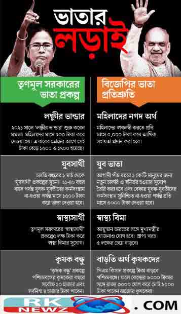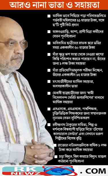 RK NEWZ বিজেপির ‘সঙ্কল্পপত্রে’ অধিকাংশই ভাতা-গোত্রীয়। মমতার তৈরি করা অস্ত্রেই মমতাকে হারানোর কৌশল বিজেপির। পশ্চিমবঙ্গের নির্বাচনী ইস্তেহারে লিখিত ঘোষণা করে নেমে পড়ল ভাতা-যুদ্ধে। অমিত শাহ আগেই বলেছিলেন, ‘‘আগামী পশ্চিমবঙ্গের যে রোডম্যাপ নিয়ে এ বারের নির্বাচনে কথা হবে, আমাদের সঙ্কল্পপত্র (ইস্তেহার) হল তার পরিচায়ক।’’ তাঁর প্রকাশ করা বিজেপির ইস্তেহারটিতে পশ্চিমবঙ্গের ‘আগামী’র জন্য একটি ‘রোডম্যাপ’ দেওয়া হয়েছে। কিন্তু তার চেয়ে উজ্জ্বল ভাবে রয়েছে নানা ধরনের ভাতা। মমতা বন্দ্যোপাধ্যায়ের সরকার যত রকম বা যে পরিমাণ ভাতা চালু করেছে, তার কয়েকগুণ ভাতা তথা আর্থিক সহায়তার কথা নির্বাচনী ইস্তেহারে ঘোষণা করে দিল বিজেপি। গত ১৫ বছরে পশ্চিমবঙ্গে নানা রকমের ভাতা চালু করেছেন মুখ্যমন্ত্রী মমতা। ‘লক্ষ্মীর ভান্ডার’ প্রকল্পে প্রথমে মাসে ৫০০ টাকা করে মহিলাদের অ্যাকাউন্টে পাঠানো শুরু করেছিলেন। পরে তা বেড়ে হয় ১০০০টাকা। এ বারের ভোটের আগে তা পৌঁছে গিয়েছে ১৫০০ টাকায়। সম্প্রতি তিনি ‘যুবসাথী’ প্রকল্পে বেকার যুবক-যুবতীদের জন্যও মাসিক ১৫০০ টাকা ভাতা চালু করেছেন। ভোটের আগে এই দুই সিদ্ধান্ত মমতার ‘মাস্টারস্ট্রোক’ বলে অনেকে দাবি করছেন। বিজেপি-ও ঝুঁকি না-নিয়ে বলতে শুরু করেছিল যে, মমতা যা দিচ্ছেন, ক্ষমতায় এলে বিজেপি তার দ্বিগুণ দেবে। এ বার নির্বাচনী ইস্তেহার প্রকাশ করে খোদ শাহ সে কথা আনুষ্ঠানিক ভাবে ঘোষণাও করে দিলেন। ফলে ইস্তেহারে উল্লিখিত শিল্পোন্নয়ন, পরিকাঠামো উন্নয়ন, শিক্ষা এবং স্বাস্থ্য পরিষেবার উন্নয়ন ইত্যাদির চেয়ে ভাতা-উন্নয়ন নিয়েই বেশি কথা শুরু হয়ে গিয়েছে। ‘সঙ্কল্পপত্র’ প্রকাশের জন্য নিউটাউনে আয়োজিত সাংবাদিক বৈঠকে শাহ শুক্রবার গরিব, নিম্মমধ্যবিত্ত এবং মধ্যবিত্ত ঘরের মহিলাদের জন্য এবং কাজের খোঁজে থাকা যুবক-যুবতীদের জন্য মাসে ৩০০০টাকা করে ভাতার কথা ঘোষণা করতেই রাজ্য বিজেপিতে উচ্ছ্বাস শুরু হয়ে যায়। মমতার তথাকথিত ‘মাস্টারস্ট্রোক’-কে ‘শাহি’ ঘোষণা ম্লান করে দিয়েছে।