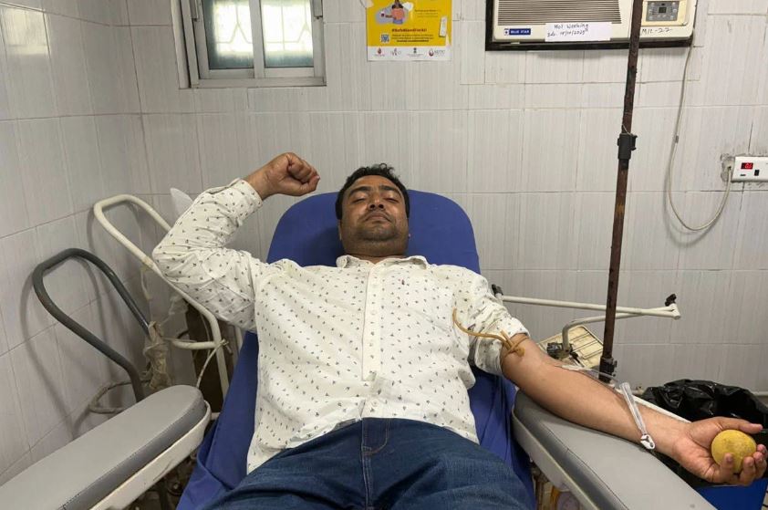 গঙ্গারামপুর কেন্দ্রে এবার সিপিএমের প্রার্থী বিপ্লব বর্মন। এলাকায় ঘুরে ঘুরে প্রচারের পাশাপাশি মানুষের সঙ্গে জনসংযোগও করছেন তিনি। রবিবার সকালেও কর্মী-সমর্থকদের সঙ্গে নিয়ে ভোটের প্রচারে বেরিয়েছিলেন তিনি। গঙ্গারামপুরের ১০ ও ১১ নম্বর ওয়ার্ডে নির্বাচনী প্রচার চলছিল। সেসময় খবর আসে, গঙ্গারামপুর সুপার স্পেশালিটি হাসপাতালে এক মুমূর্ষু রোগীর দ্রুত রক্তের প্রয়োজন। কিন্তু সেই রক্ত মিলছে না। রক্তদাতারও সন্ধান পাওয়া যাচ্ছে না। এদিকে ডোনার না পাওয়া গেলে ব্লাডব্যাঙ্ক থেকে রক্ত দেওয়া সম্ভব নয়, সে কথা জানানো হয়েছিল। সেই কথা শোনার পরই প্রচার ফেলে সিপিএম প্রার্থী বিপ্লব বর্মন সোজা হাসপাতালের ব্লাডব্যাঙ্ক চলে যান। রক্ত দেওয়ার ইচ্ছাপ্রকাশ করেন তিনি। কিছু প্রয়োজনীয় শারীরিক পরীক্ষার পর চিকিৎসকরা তাঁর রক্ত নেন। সময় মতো রক্ত না পেলে ওই রোগীর শারীরিক অবস্থা আরও সঙ্কটজনক হয়ে যেত। এমনই প্রাথমিকভাবে জানা গিয়েছে। এই বিষয়ে সিপিআইএম প্রার্থী বিপ্লব বর্মন জানিয়েছেন, তিনি ১৮ বছর বয়স থেকে রক্ত দিয়ে আসছেন। রক্তদান মানে জীবন দান, সেই বিশ্বাসেই প্রচার ফেলে এসে রক্ত দেওয়া।