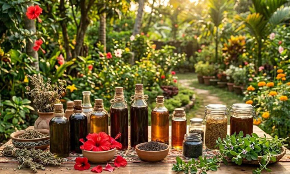 কারিপাতা-ব্রাহ্মীশাকের তেল — উপকরণ: আধ কাপ খাঁটি নারকেল তেল। ১০-১২টি জবা ফুল। ১ কাপ কারিপাতা। আধ কাপ মেহেন্দি পাতা। এককাপ ব্রাহ্মীশাক। ৩টি আমলকি। ২ চামচ মেথিদানা। প্রণালী: ব্রাহ্মীশাক ধুয়ে কুচিয়ে নিতে হবে। আমলকিও ধুয়ে শুকিয়ে কুচিয়ে নিতে হবে। লোহার কড়ায় তেল প্রস্তুত করা গেলে সবচেয়ে ভাল হয়। মাঝারি আঁচে তা তৈরি করতে হবে। নারকেল তেল গরম হলে তাতে দিতে হবে আমলকি কুচি। তার পর একে একে মেথিদানা, কালো তিল। আঁচ কমিয়ে মিনিট দশেক ফুটিয়ে দিতে হবে জবাফুল। ফুল দেওয়ার কিছু পরেই তেলের রং বদলে যাবে। আঁচ বন্ধ করে সেটি ঠান্ডা করে ছেঁকে কাচের শিশিতে ভরে রাখতে হবে।
